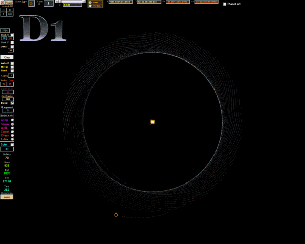 | Click the link below and Download Orbit Game 6 (2014) to see the real-time computations. Version 6 has fixed planetary sizes. >> orbit-game-6.exe << 276 kb . |
