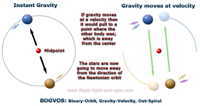 travelling at the velocity of light. I cannot say it any more clearly than this: There is zero evidence that any other Post-Newtonian theorist ever considered the role that the velocity of gravity plays in the geometry of an orbit: it causes a prodigious outwards spiral enormously greater than any other effect of any other Post-Newtonian theory on most orbits by a factor of roughly about a million times. . |