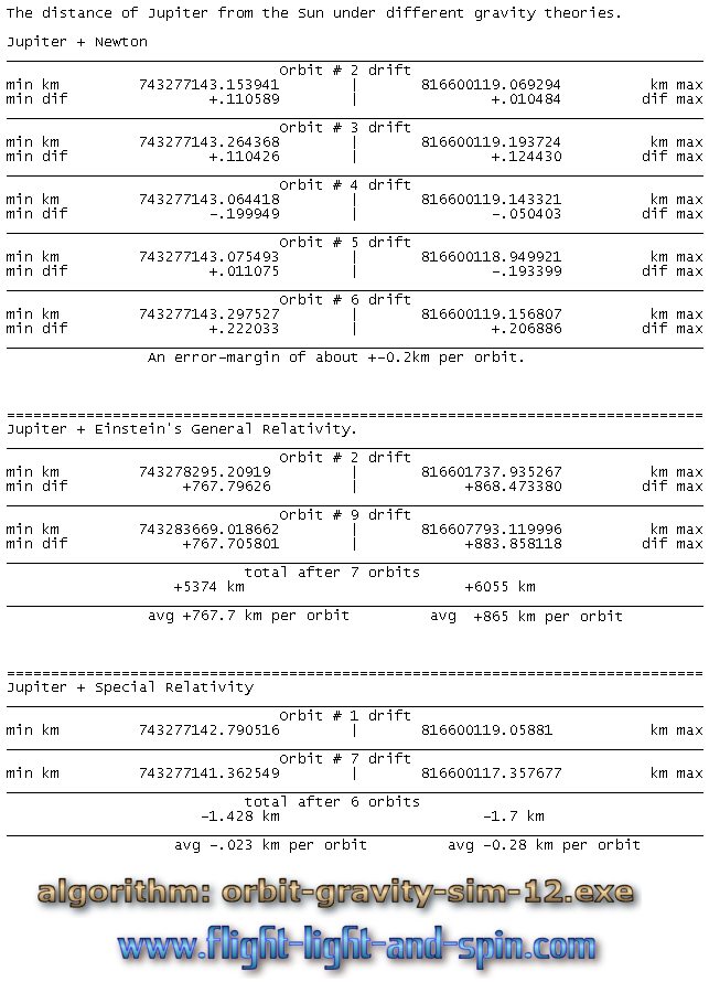 | Relativity and Jupiter's orbit Strictly speaking Jupiter and the Sun are a binary system, albeit with a mass-ratio difference of about 1:1000. Scenario [3] and [4] of the algorithm orbit-gravity-sim-12.exe run at the brisk time-rate-scale of 1:10 million, completing its 12 year orbit in 40 seconds for the user. The