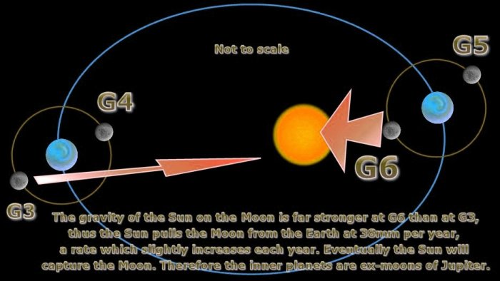 this model the moon recedes from the Earth because of the Sun's gravity |